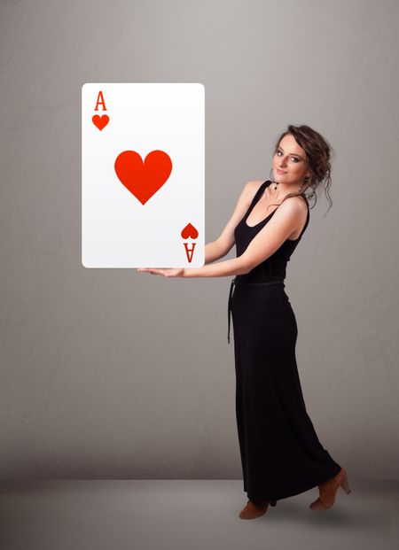 Beautifu young woman holding a red heart ace