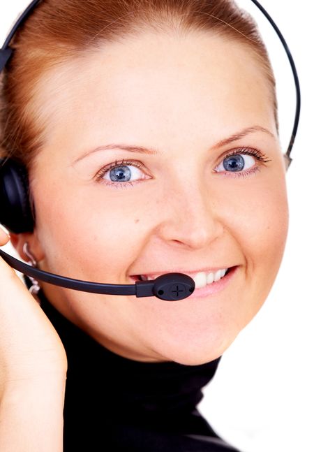 beautiful business customer service woman smiling isolated over a white background