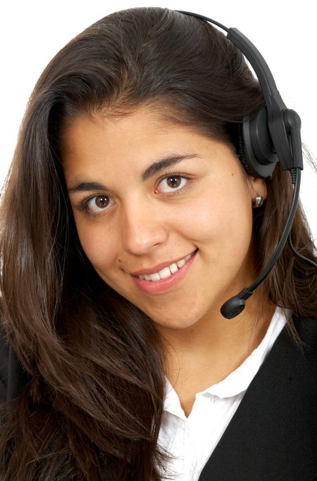 beautiful business customer service woman - smiling isolated over a white background