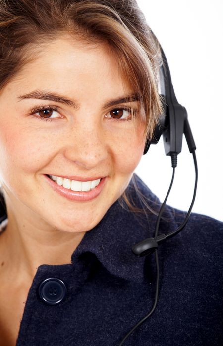 beautiful business customer service woman - smiling isolated over a white background