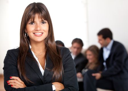 Beautiful business woman portrait with a group behind her