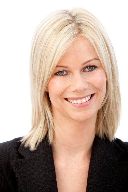 Beautiful business woman portrait isolated over a white background