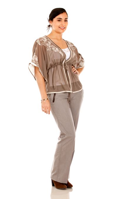 Beautiful business woman standing - isolated over white