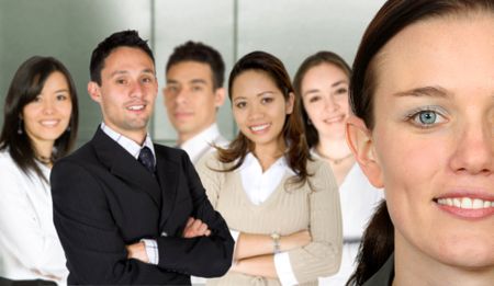 beautiful business woman and her team in an office