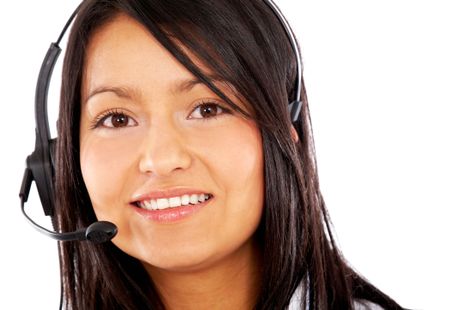 beautiful businesswoman customer service representative - smiling isolated over a white background