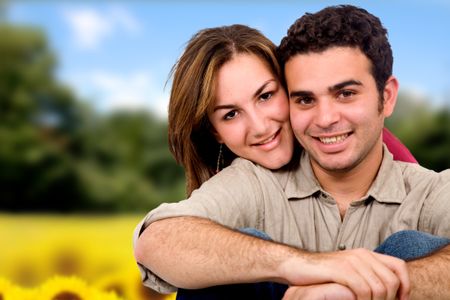 Beautiful couple in love outdoors in a park