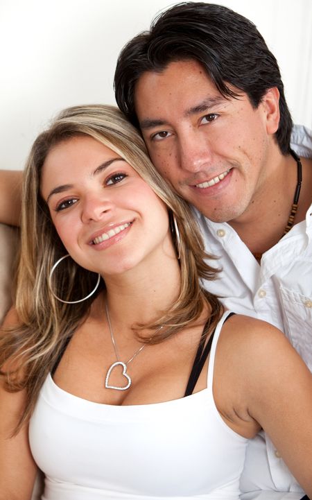 beautiful couple portrait smiling isolated over white