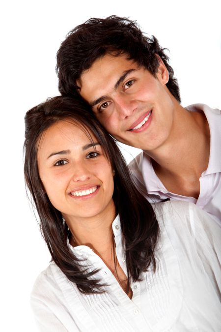 Beautiful couple portrait smiling isolated over white