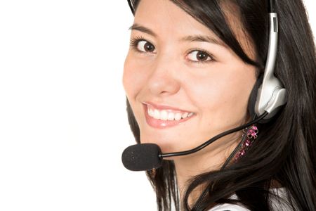 Beautiful Customer Support Girl over white