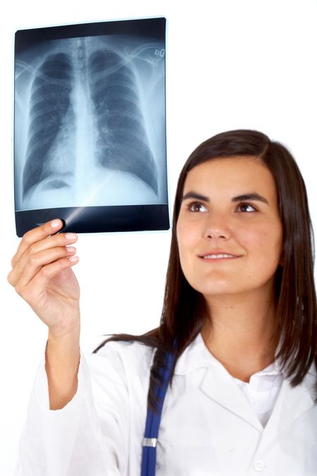 beautiful doctor holding an xray in her hand
