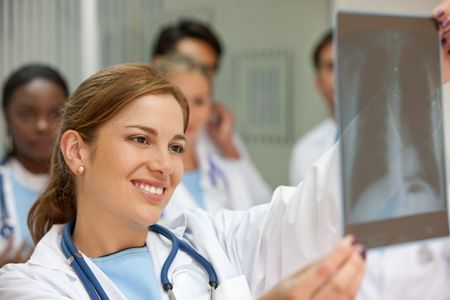 beautiful doctor holding an xray in her hands
