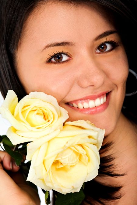 Beautiful fashion woman portrait smiling over a white background