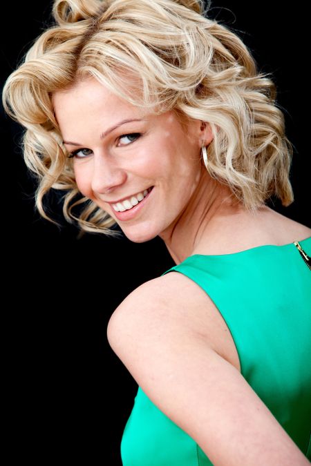 Beautiful fashion woman smiling isolated over a black background