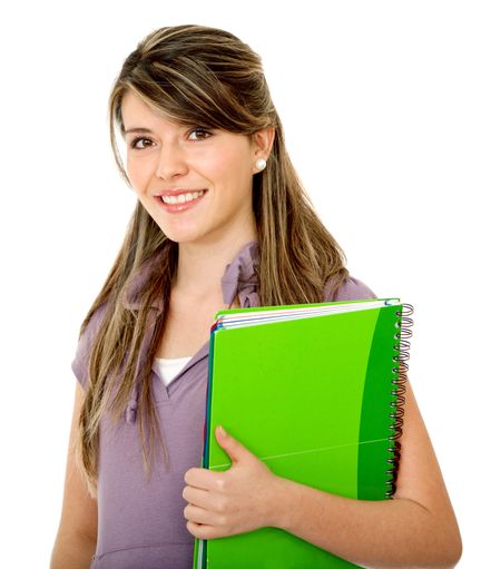 Beautiful female student smiling isolated over a white background