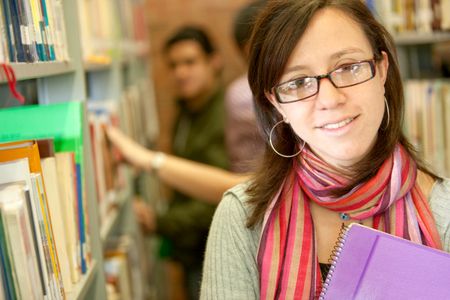 Beautiful female university student at the library