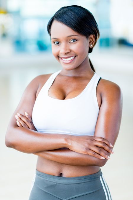 Beautiful fit woman at the gym looking happy