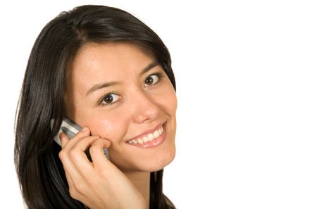 beautiful girl on a cellphone over white