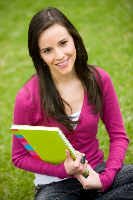 Beautiful girl holding notebooks - smiling outdoors