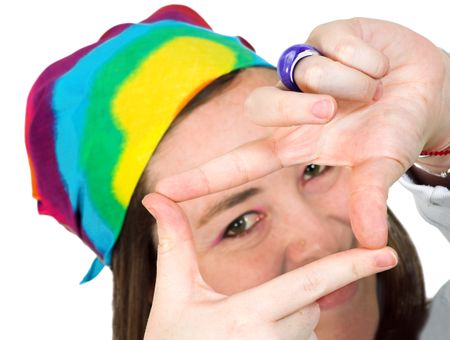 beautiful girl making a frame with her hands
