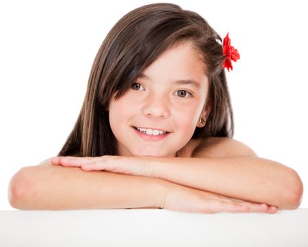Beautiful girl portrait smiling - isolated over a white background