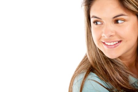 Beautiful girl smiling and looking to the side ���� isolated