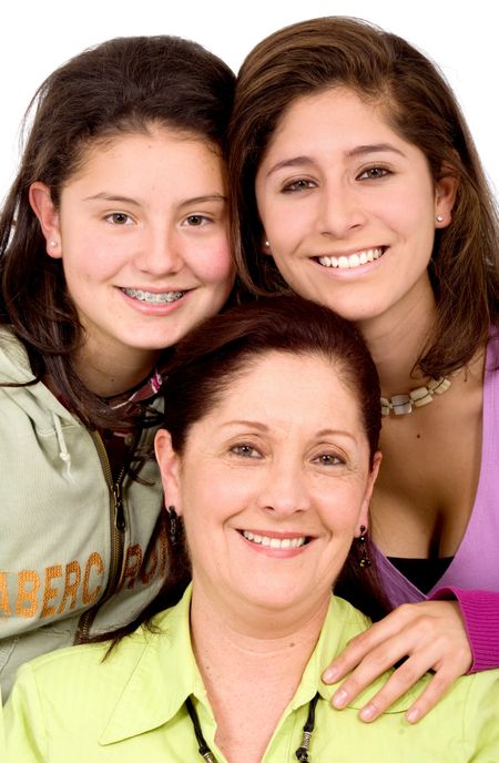 beautiful happy family portrait - all smiling over a white background