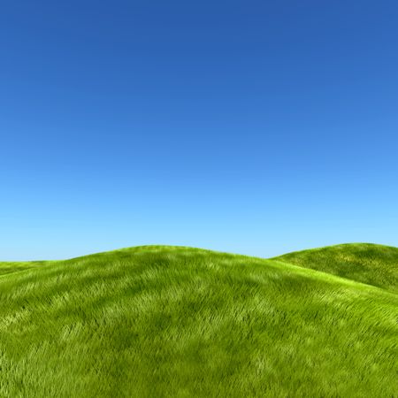 Beautiful landscape with a green hill and the sky on the background