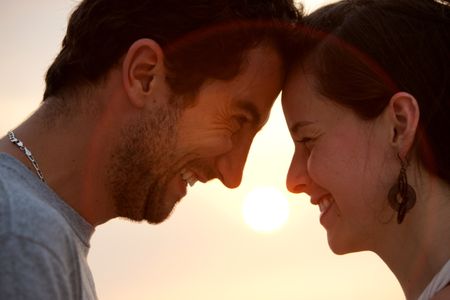Beautiful loving couple together at sunset