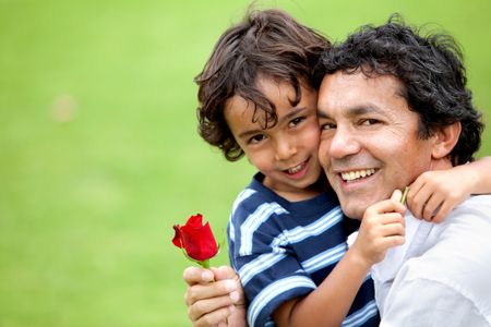 Beautiful portrait of a father and his son outdoors