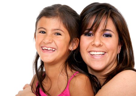 Beautiful portrait of a mother with her daughter isolated over a white background