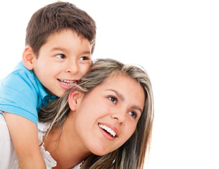 Beautiful portrait of a mother and son - isolated over a white background