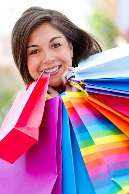 Beautiful shopping woman holding bags at a mall