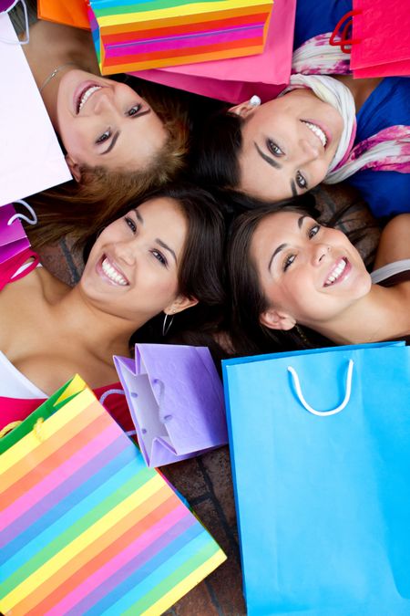 Beautiful shopping women with bags and smiling