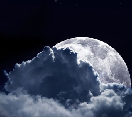 Beautiful shot of a full moon behind some clouds in a dark blue sky