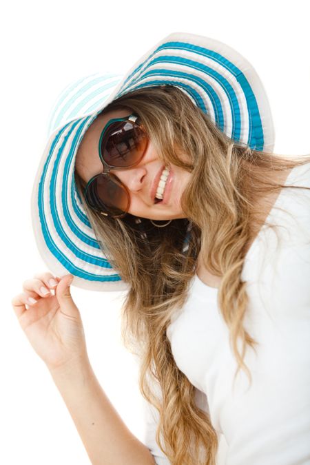 Beautiful summer girl with a hat isolated