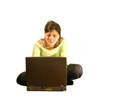 beautiful teenager working on a laptop
