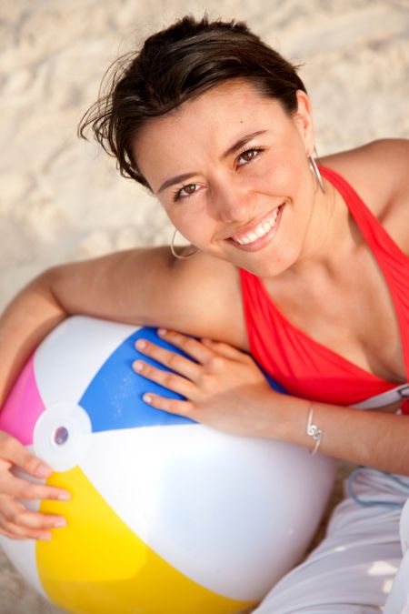 Beautiful woman with a beach ball smiling