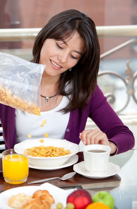 Beautiful woman eating her breakfast at home