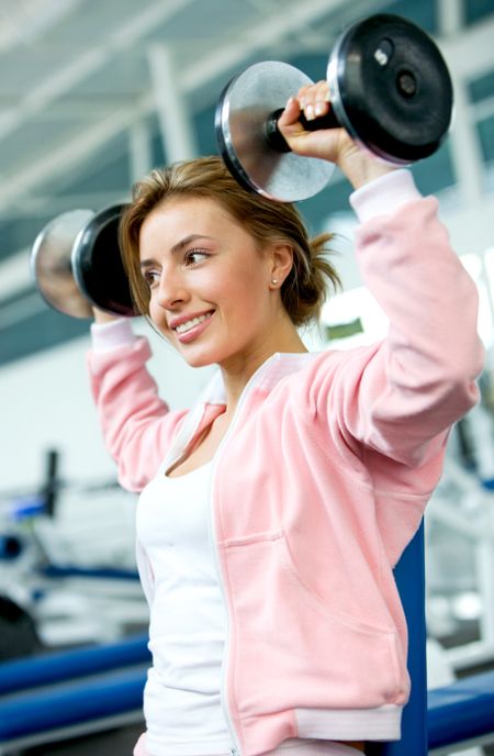 beautiful woman at the gym exercising with free weights