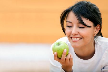 https://www.freestock.com/free-photos/beautiful-woman-holding-apple-smiling-56437351