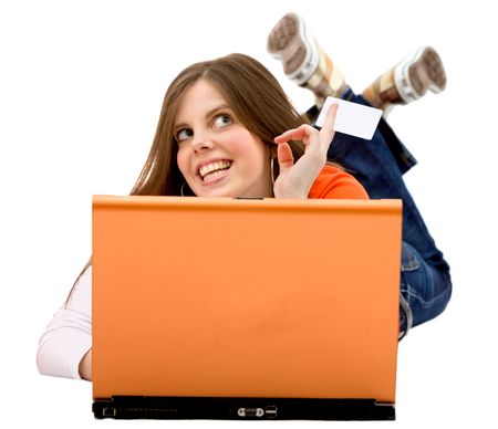 Beautiful woman with a laptop isolated on white