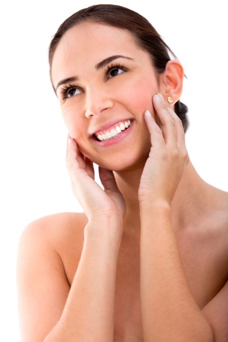 Beautiful woman portrait looking very happy - isolated over a white background