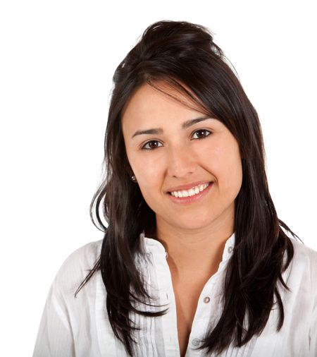 Beautiful woman portrait smiling - isolated over a white background