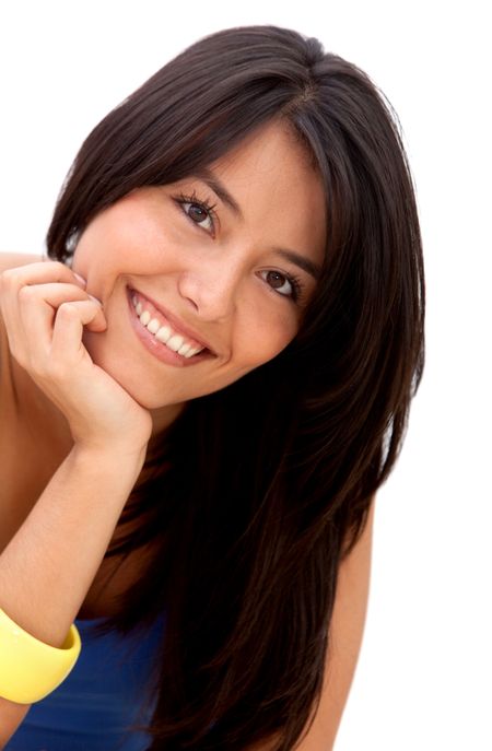 Beautiful woman portrait smiling isolated over a white background
