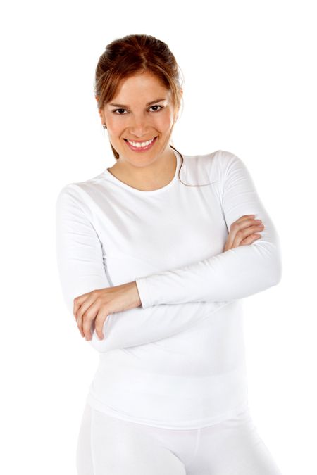 Beautiful woman portrait smiling isolated over a white background
