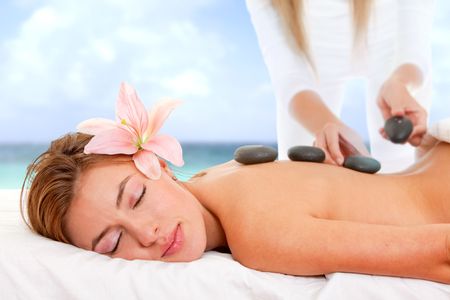 Beautiful woman relaxing at a spa getting a massage
