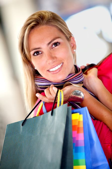 Beautiful woman at a shopping center with bags