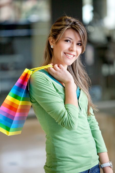 Beautiful woman at a shopping center smiling