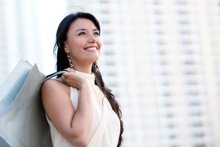 Beautiful woman shopping holding bags and smiling