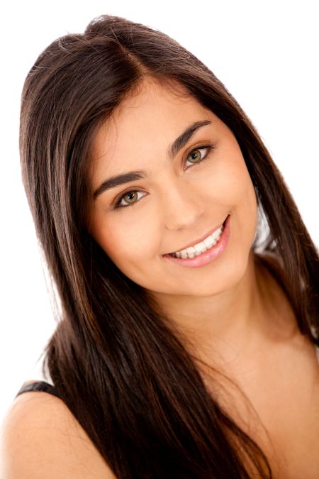 Beautiful woman smiling - isolated over a white background
